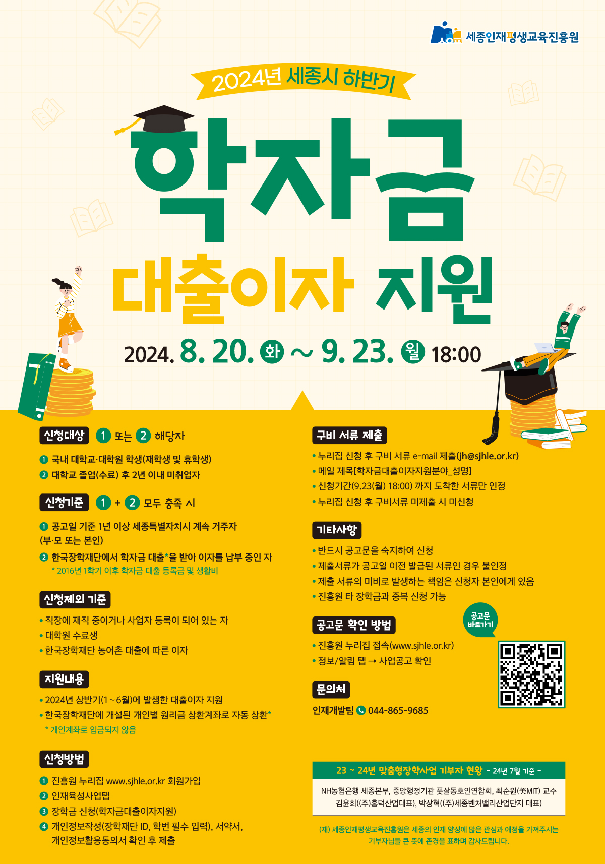 2024년 하반기 학자금 대출이자 지원(세종시) 홍보