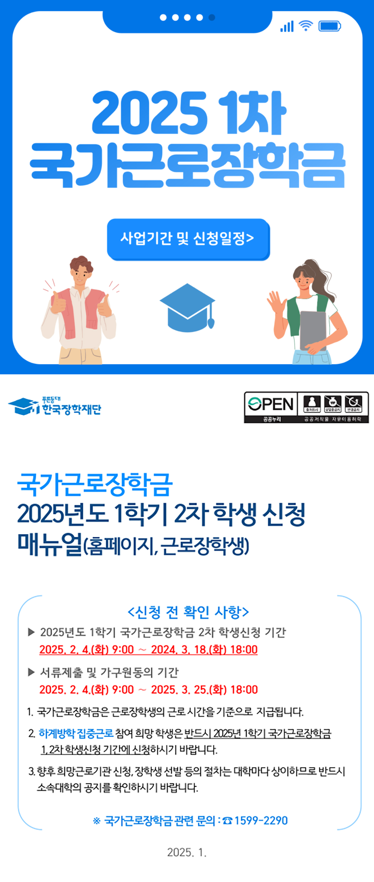 2025년 1학기 국가근로장학금 2차 학생 신청 매뉴얼