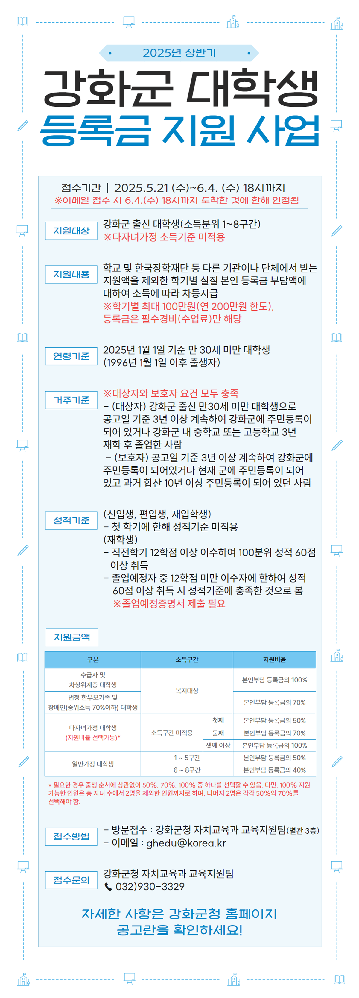 2025년도 상반기 강화군 대학생 등록금 지원 사업 공고