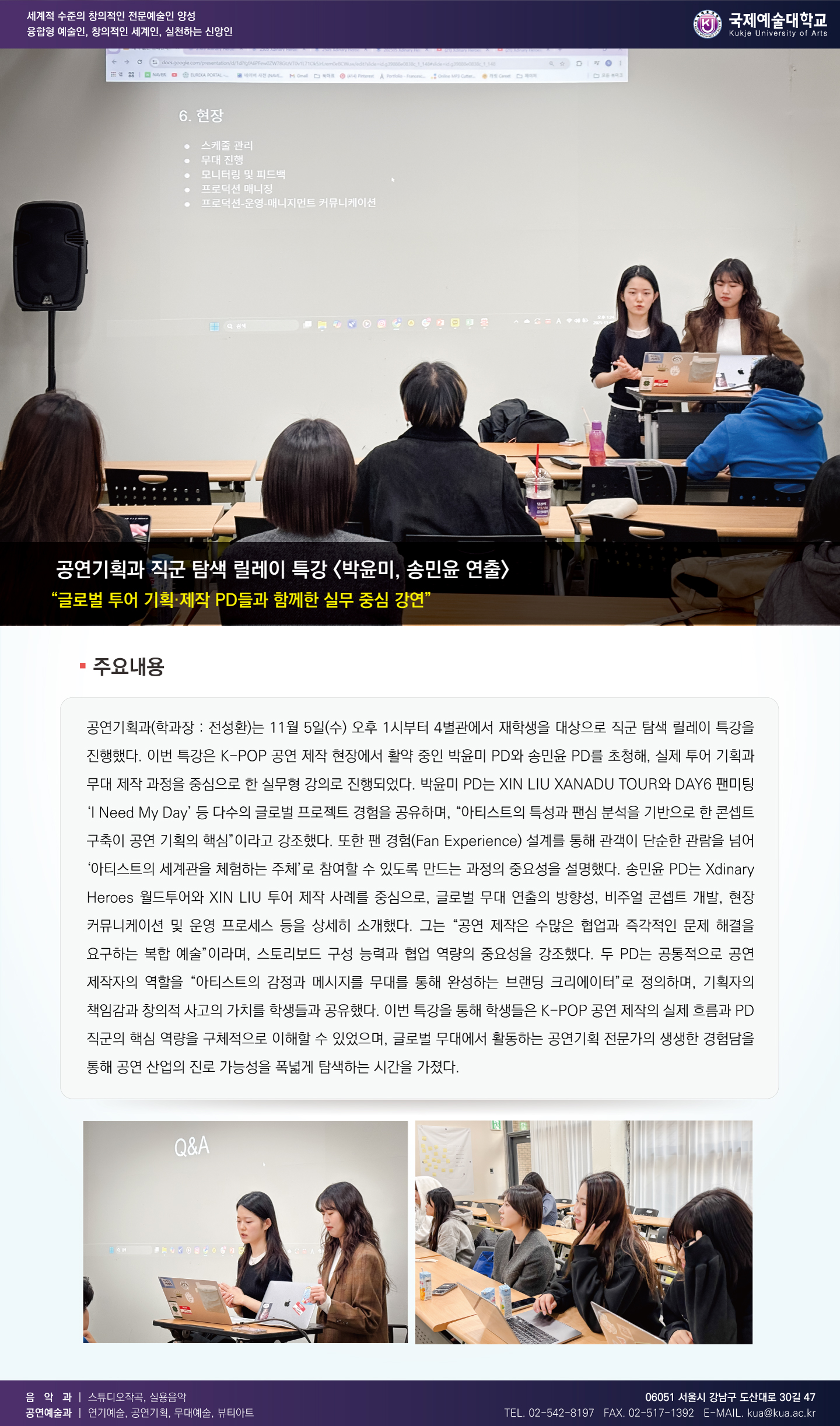 [공연기획과] 직군 탐색 릴레이 특강 '박윤미, 송민윤 연출'