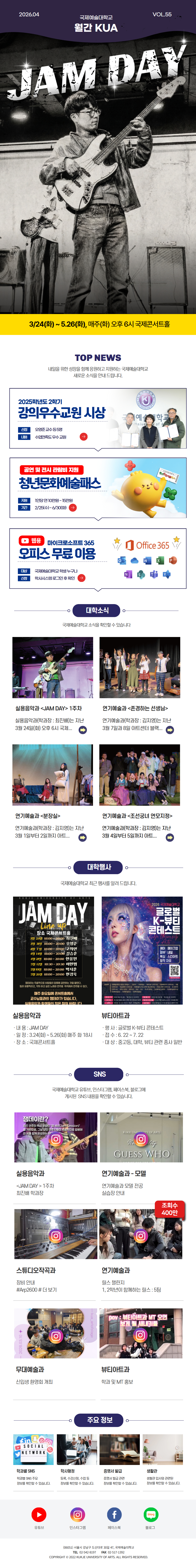 국제예술대학교 2026년 월간 KUA 4월 55호
